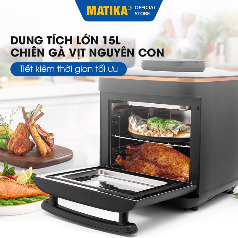 Nồi Chiên Hơi Nước MATIKA 15l MTK-9315Nồi chiên hơi nước Matika MTK-9315 dung tích 15L sở hữu thiết kế sang trọng giúp nâng tầm không gian bếp gia đình, chức năng 2in1 với sự kết hợp giữa công nghệ chiên hơi nước Steam Active đối lưu và công nghệ chiên không dầu Rapid Air cho món ăn thơm ngon trọn vị dưỡng chất.