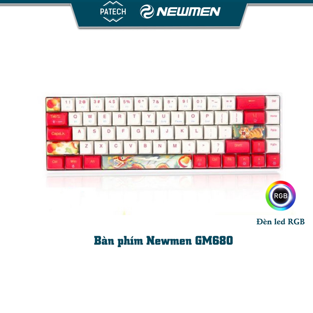 Bàn phím cơ không dây Dual Mode Newmen GM680,Layout 68 phím Hotswap,đa chế độ kết nối,tặng thêm keycap Rồng Hổ,BH 24M