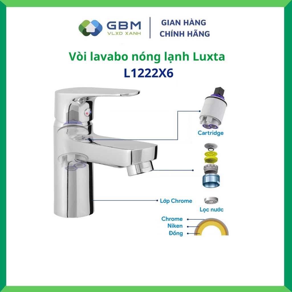 Giới thiệu [Mã BMBAU300 giảm 10% đơn 499K] Vòi Lavabo Nóng Lạnh Luxta L1222X6-VLXD XANH