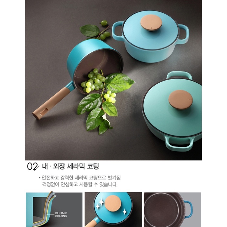 Nồi nhà bếp (loại nồi casserole size trung) Ceramic từ tính cao cấp hiệu PoongNyun Series Bliss Nordic 3 lớp dầy 2.5mm chống dính, chống trầy xước màu xanh Mint Blue với công nghệ tráng men hiện đại “Hard Anodized” không tróc men, chống gỉ sét, chống ăn mòn, giữ và gia nhiệt lâu hơn giúp thức ăn mau chín tiết kiệm thời gian và nhiên liệu, thiết kế nắp chống trào, tay cầm dài chống nóng, sử dụng trên bếp gas, bếp hồng ngoại, bếp từ, gồm 02 món (1 nồi và 1 nắp ceramic 20cm).• Xuất xứ thương hiệu: Hàn Quốc • Sản xuất tại: Made in Korea • Đường kính đáy : 20cm