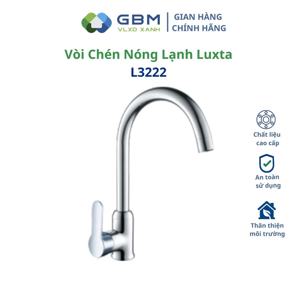 Vòi Chén Nóng Lạnh Luxta L3222 cao cấp tại VLXD XANH Vòi Chén Nóng Lạnh Luxta L3222 là dòng sản phẩm cao cấp được người tiêu dùng lựa chọn. Sản phẩm được đúc nguyên khối, cùng với thiết kế mạnh mẽ, trẻ trung và hiện đại. Vòi Chén Nóng Lạnh Luxta L3222 tạo sự thoải mái khi sử dụng ngay trong mùa hè nắng nóng hay mùa đông lạnh giá, là sản phẩm không thể thiếu giúp không gian bếp nhà bạn thêm tiện nghi và sang trọng.