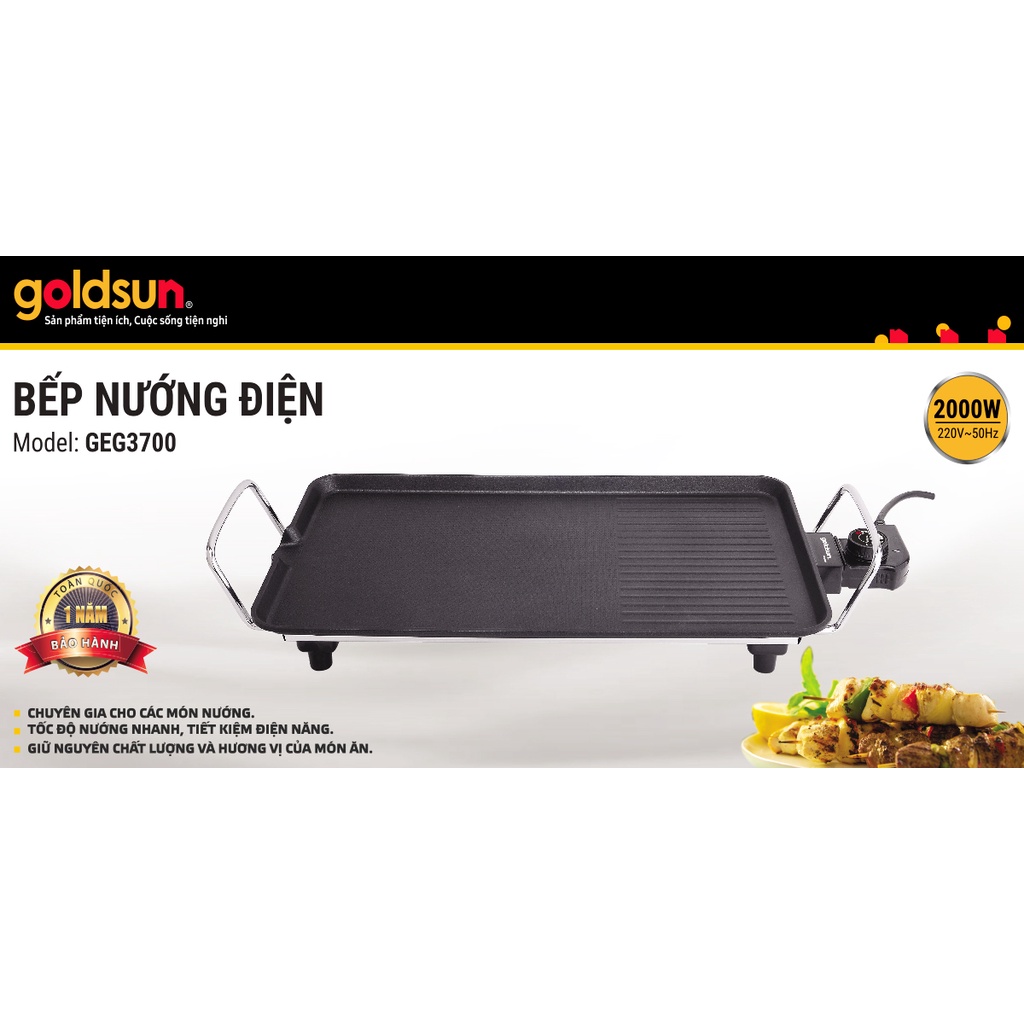 Nhà cửa & Đời sống > Dụng cụ nhà bếp > Lò nướng & phụ kiện || [Mã BMBAU300 giảm 7% tối đa 300K đơn 499K] Vỉ nướng điện Goldsun GEG-3700 2000W Hàng chính hãng Bảo hành 12 thángCòn hàng