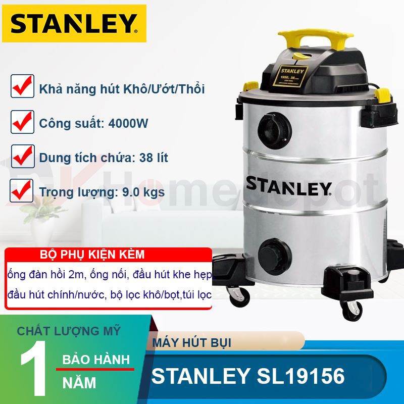 Thiết Bị Điện Gia Dụng > Thiết bị điện gia dụng nhỏ > Máy hút bụi & Thiết bị làm sạch sàn || [Mã BMBAU300 giảm 7% tối đa 300K đơn 499K] Máy hút bụi công nghiệp khô và ướt Stanley SL19117Còn hàng