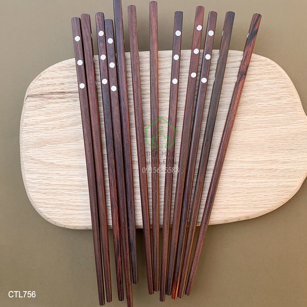 Giới thiệu [Mã BMBAU50 giảm 10% đơn 99k] Đũa gỗ trắc khảm xà cừ 3 chấm_Không nhuộm tẩy độc hại_Bộ 10 đôi vuông tặng hộp (CTL756)