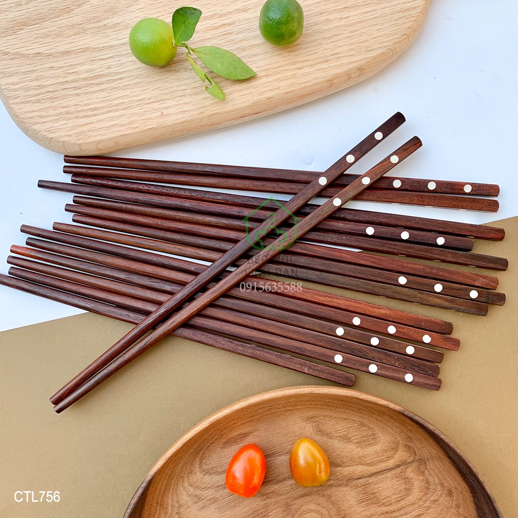 Nhà cửa & Đời sống > Bộ đồ bàn ăn > Bộ dao kéo || [Mã BMBAU50 giảm 10% đơn 99k] Đũa gỗ trắc khảm xà cừ 3 chấm_Không nhuộm tẩy độc hại_Bộ 10 đôi vuông tặng hộp (CTL756)Còn hàng