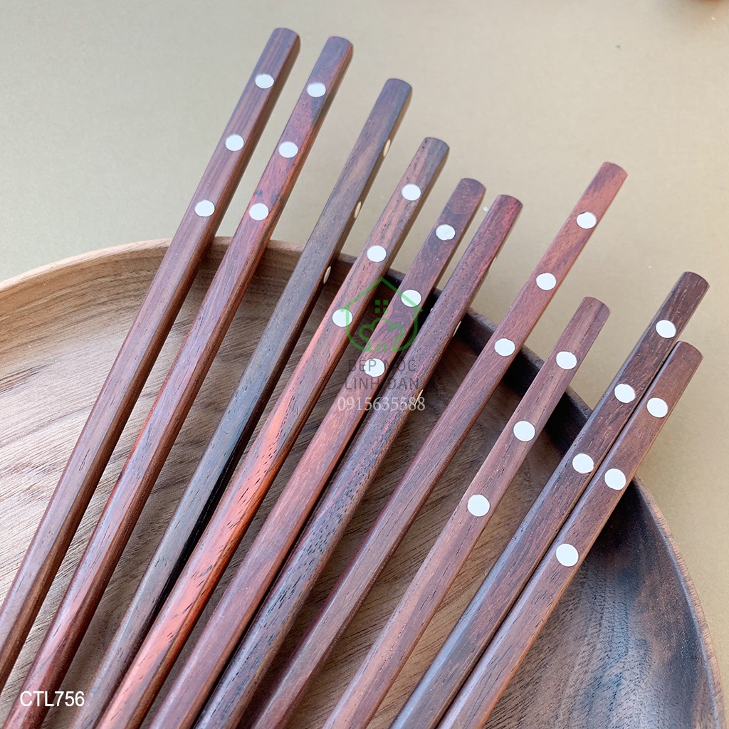 [Mã BMBAU50 giảm 10% đơn 99k] Đũa gỗ trắc khảm xà cừ 3 chấm_Không nhuộm tẩy độc hại_Bộ 10 đôi vuông tặng hộp (CTL756)