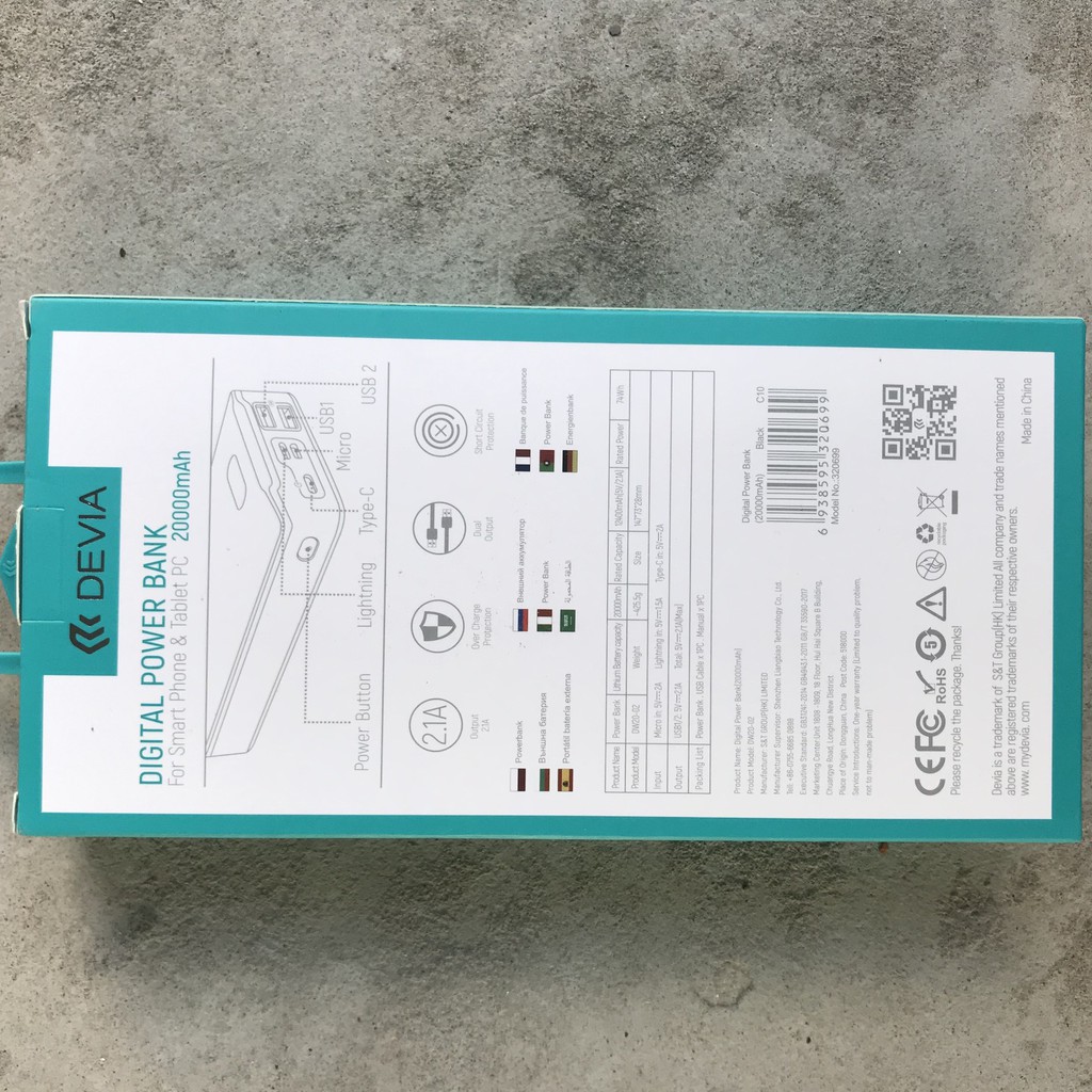 Tên sản phẩm : Pin dự phòng Devia 20.000 mAh Digital Power chính hãng- PHÁT HIỆN HÀNG GIẢ ĐỀN TIỀN GẤP 10!