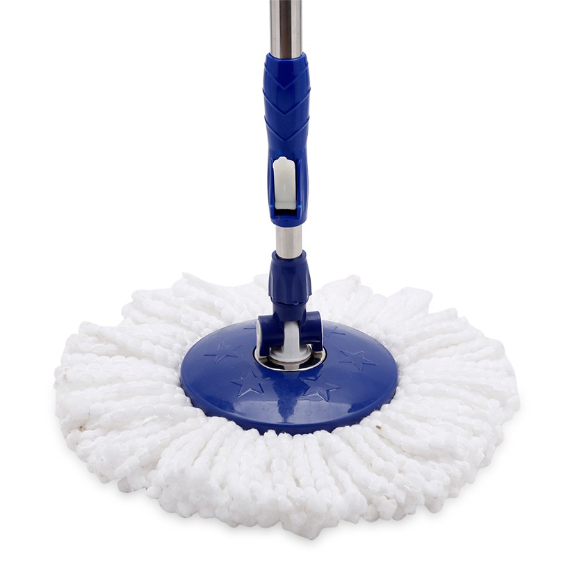 Cây lau nhà có thể tăng giảm chiều dài, giúp bạn điều chỉnh lau gần, xa, cao, thấp. Rổ quay được tích vào trong thùng nước, chỉ cần ấn nhẹ, rổ sẽ tạo lực quay ly tâm giúp vắt bông lau nhanh khô. Thiết kế 4 bánh xe dưới đáy thùng nước giúp bạn di chuyển thùng dễ dàng.