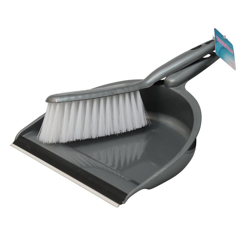 Đồ gom rác sử dụng kết hợp với chổi để thu gom bụi và những vật nhỏ.Màu sắc/Thiết kế: Bạc/Đen cùng Lông chổi Trắng
