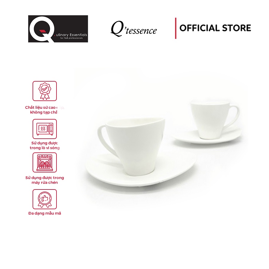 Giới thiệu Bộ 2 Ly Trà Q'tessence Màu Trắng 220ml và Dĩa Lót Ly Màu Trắng
