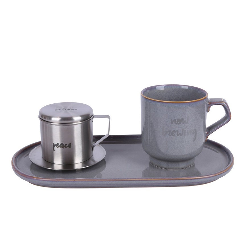 Nhà cửa & Đời sống > Dụng cụ nhà bếp > Dụng cụ pha trà, cà phê || [Mã BMBAU50 giảm 50K đơn 150K] Bộ pha cà phê Vintage 3 món cao cấp (gồm phin cafe, cốc và đĩa sứ oval) Sa MaisonCòn hàng