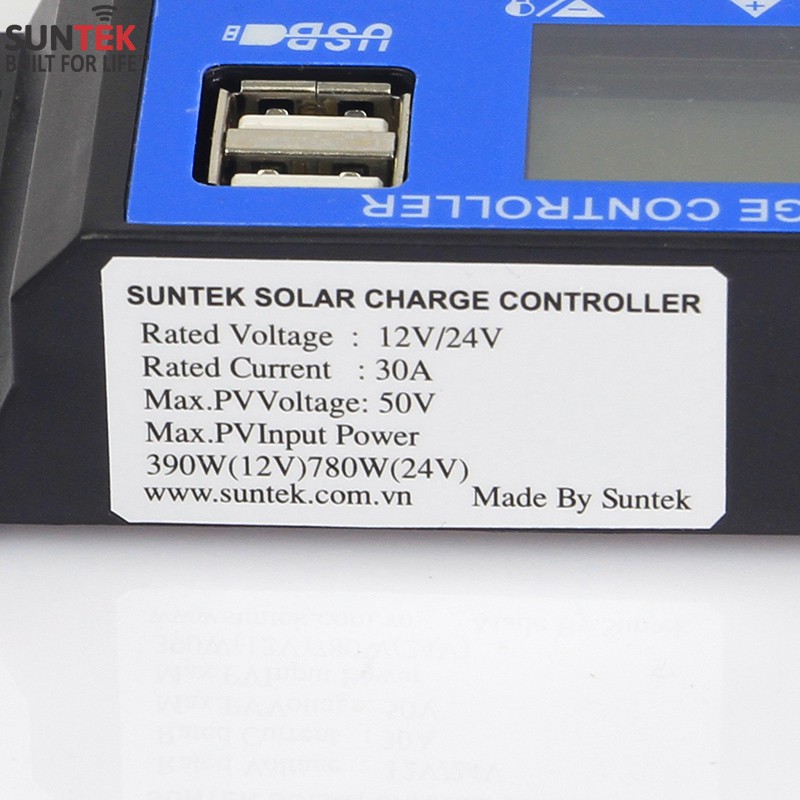 Bộ điều khiển sạc nặng lượng mặt trời SUNTEK 30A