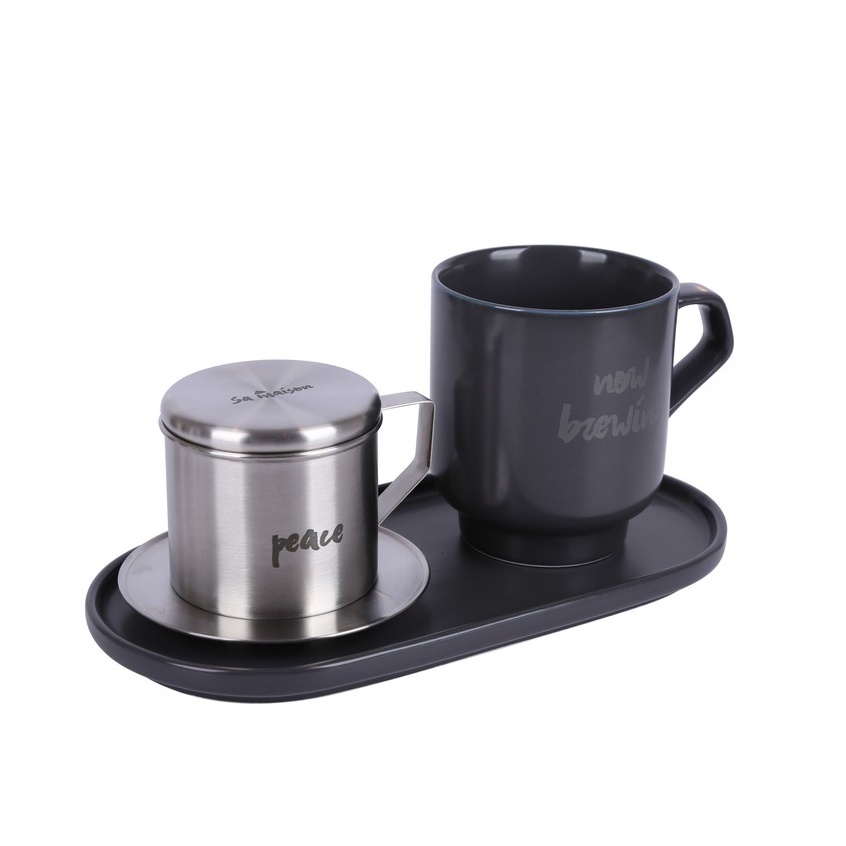 Nhà cửa & Đời sống > Dụng cụ nhà bếp > Dụng cụ pha trà, cà phê || [Mã BMBAU50 giảm 50K đơn 150K] Bộ pha cà phê Modern 3 món cao cấp (gồm phin cafe, cốc và đĩa sứ oval) Sa MaisonCòn hàng
