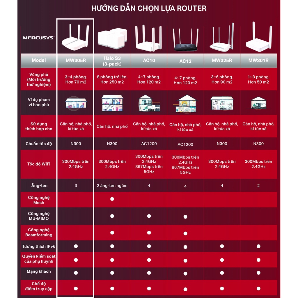 🏷️ BỘ PHÁT WIFI MERCUSYS MW305R CHUẨN N 300Mbps📌 TÍNH NĂNG NỔI BẬT: