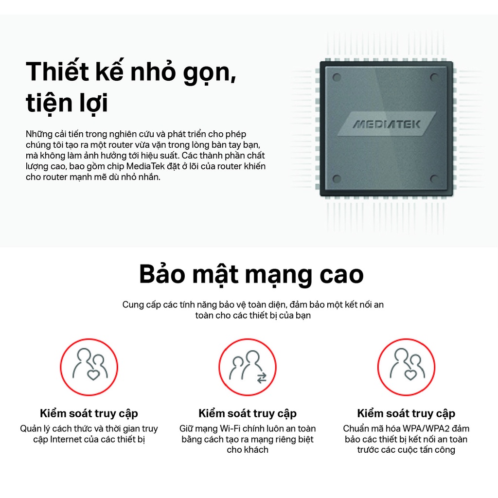 - Chip MediaTek đặt ở lõi của router khiến cho router mạnh mẽ dù kích thước nhỏ nhắn.