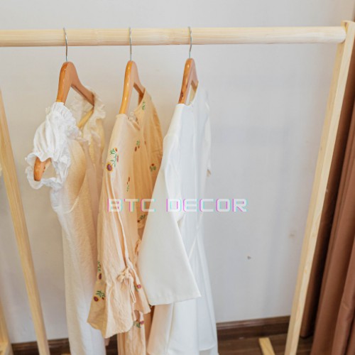 - Kệ Treo Quần Áo Gỗ Thanh Đơn dùng để treo và cất giữ quần áo trong phòng ngủ thay thế tủ đồ.