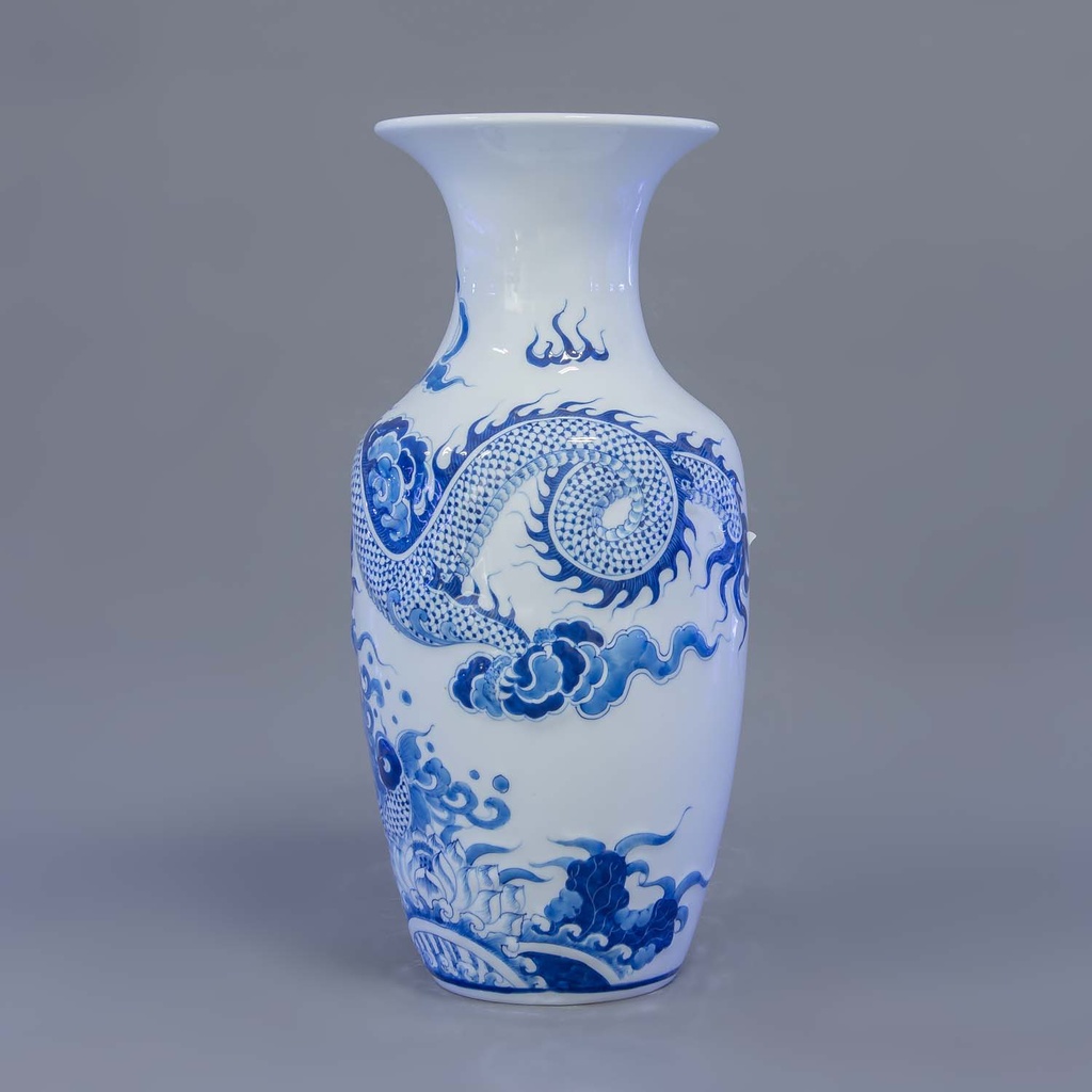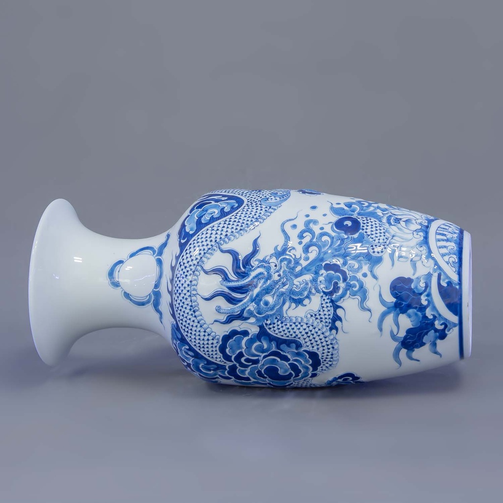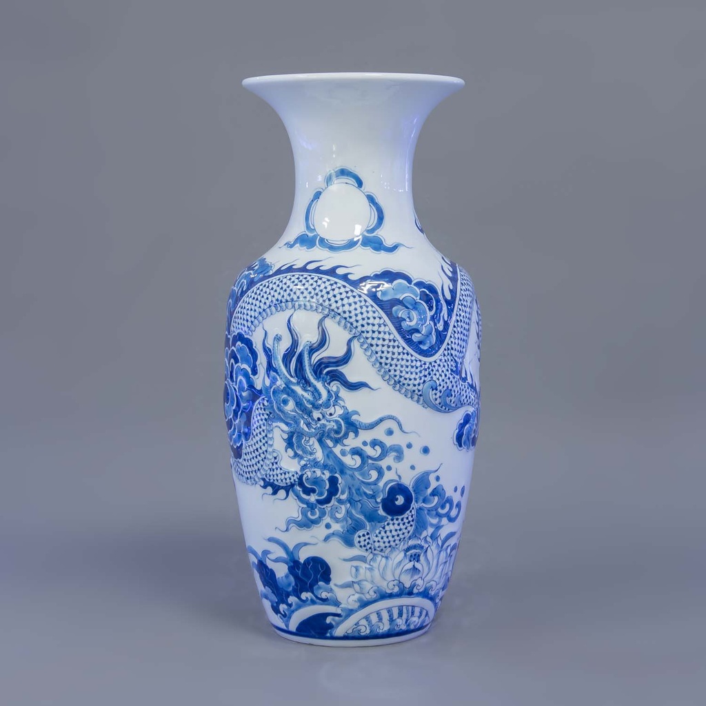 Giới thiệu Lọ hoa Men Lam Trắng NỔI họa tiết RỒNG, đồ thờ cúng PHÙNG GIA - Gốm sứ Bát Tràng cao cấp