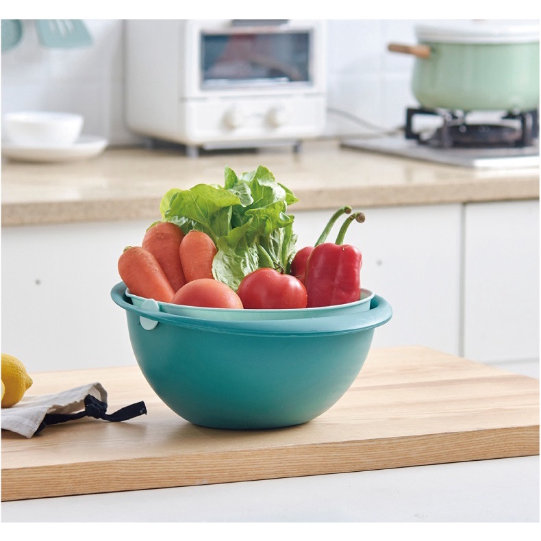 👉 Bộ sản phẩm gồm 1 rổ và 1 chậu nhựa có thể tháo rời rất tiện lợi. Thiết kế 2 trong 1, rổ nằm gọn bên trong chậu giúp tiết kiệm không gian bếp.