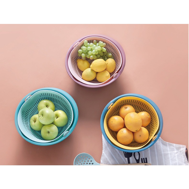 Nhà cửa & Đời sống > Dụng cụ chăm sóc nhà cửa > Chậu, xô & gáo nước || [Mã BMBAU50 giảm 50K đơn 150K] Rổ nhựa tròn có quai cầm 2 bên kèm chậu hứng nước Sa Maison - 271583Còn hàng