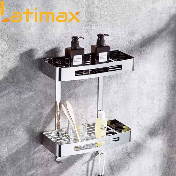 Kệ góc nhà tắm 2 tầng inox 304 chữ nhật Latimax KPT02 bắt vít chống nước chống gỉ sét