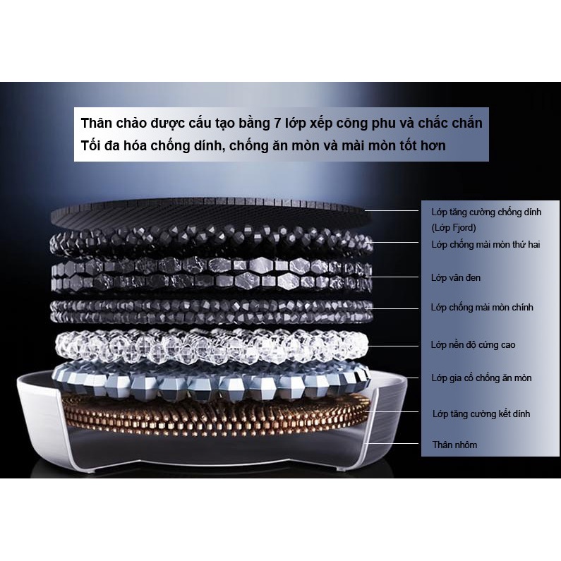 👉 Được phủ tổng cộng 9 lớp chống dính cao cấp, gồm 6 lớp mặt trong và 3 lớp mặt ngoài, sẽ khó bị trầy xước hơn gấp 5 lần sản phẩm thông thường, dễ dàng vệ sinh sau khi sử dụng.