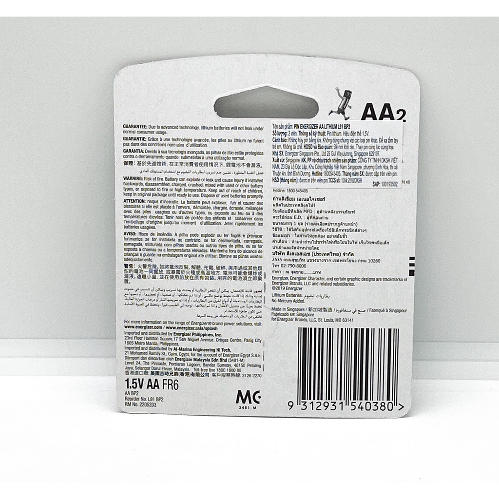 Thiết Bị Điện Gia Dụng > Pin || Vỉ 2 Viên Pin AA 1,5V ENERGIZER LITHIUM ULTIMATE LR91 - Hàng chính HãngCòn hàng