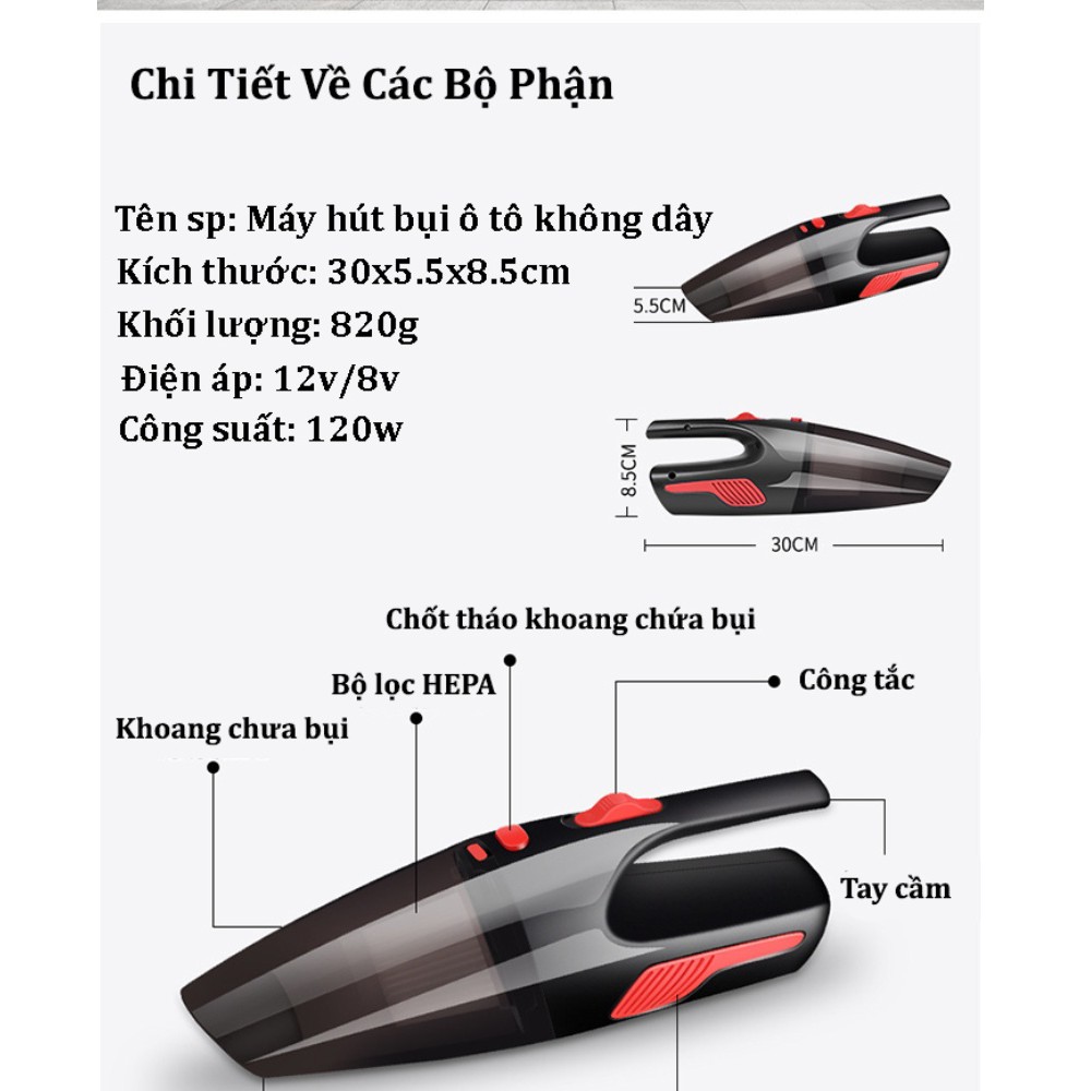 – Chức năng: hút bụi nhanh, sạch, hợp vệ sinh, công nghệ tân tiến cho ô tô, bàn phím, tủ, ghế sô fa…