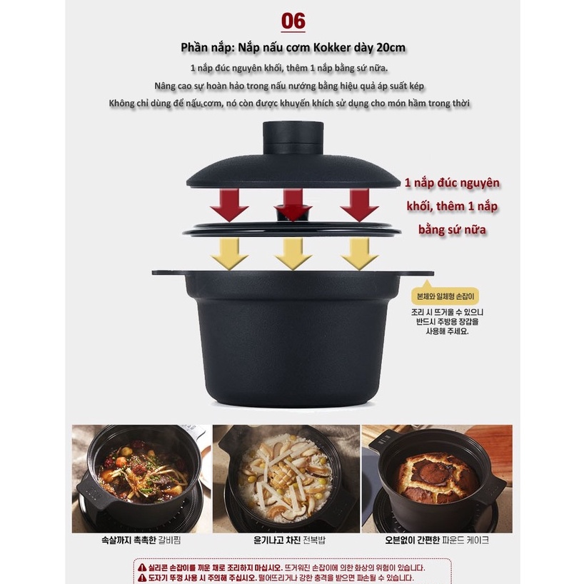 + OSLO KOKKER không chì, không cadimi, không PFOA/PFOS, không phát sinh chất độc hại khi nấu.
