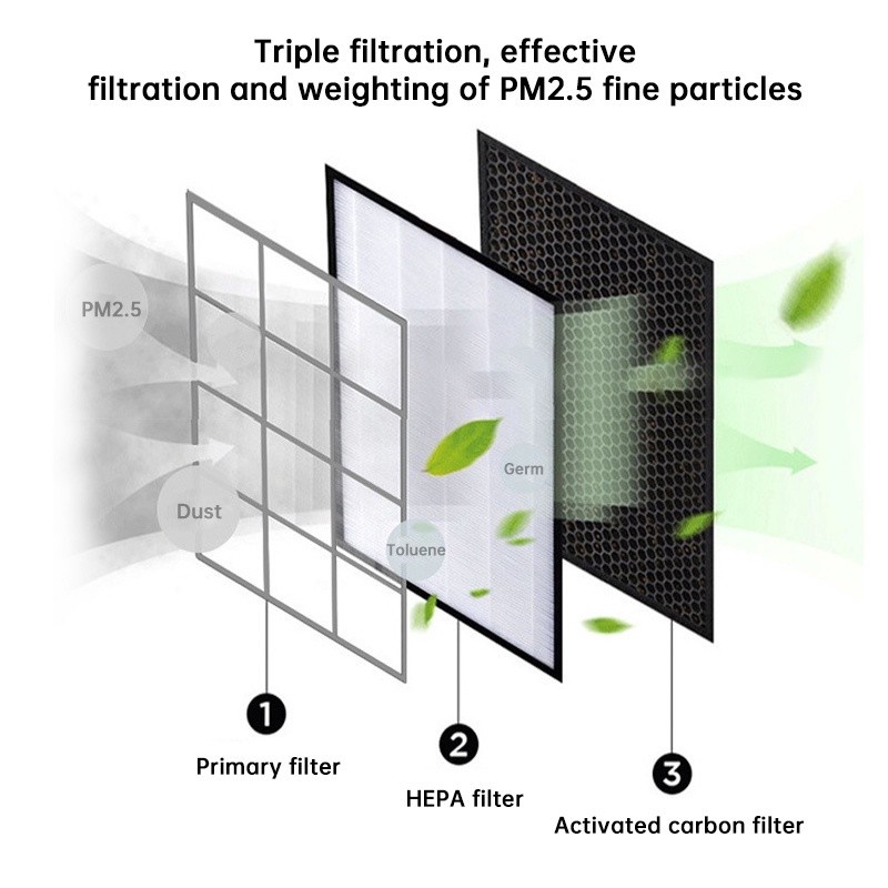> # Máy lọc không khí: # Hấp thụ hiệu quả PM2.5, bụi, chất gây dị ứng, phấn hoa, nấm mốc, khói và giảm HCHO và mùi hôi từ không khí