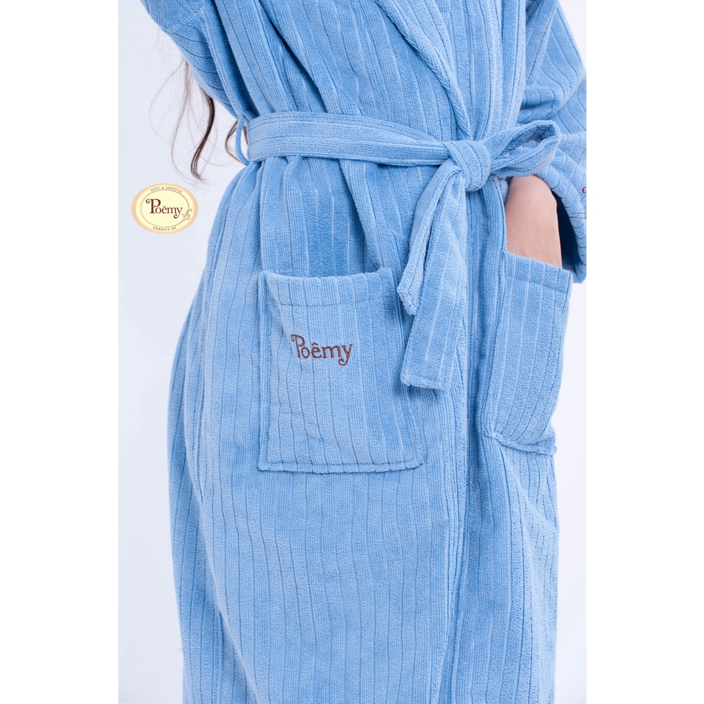 - Áo choàng tắm Poêmy được dệt từ sợi vải siêu vi mảnh kích thước chỉ bằng 1/250 sợi tóc của con người với mật độ vô cùng dày đặc khến chiếc áo siêu mềm, siêu mịn, vô cùng dịu êm.