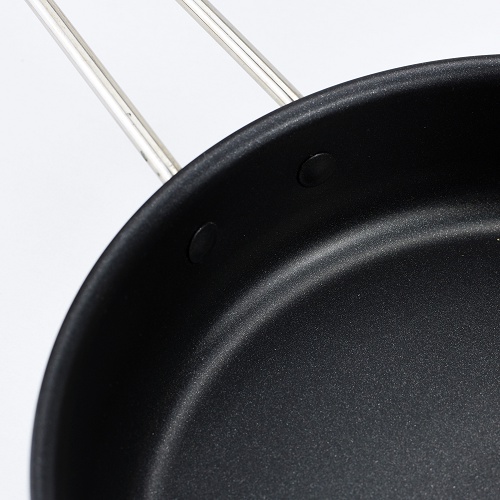 - Tay cầm inox dạng đũa thanh mảnh, sáng bóng; thiết kế rỗng cách nhiệt gắn vào thân bằng đinh tán chắc chắn, bảo vệ bạn không bị nóng khi di chuyển chảo, đảm bảo an toàn trong quá trình sử dụng, nâng nhấc, di chuyển.