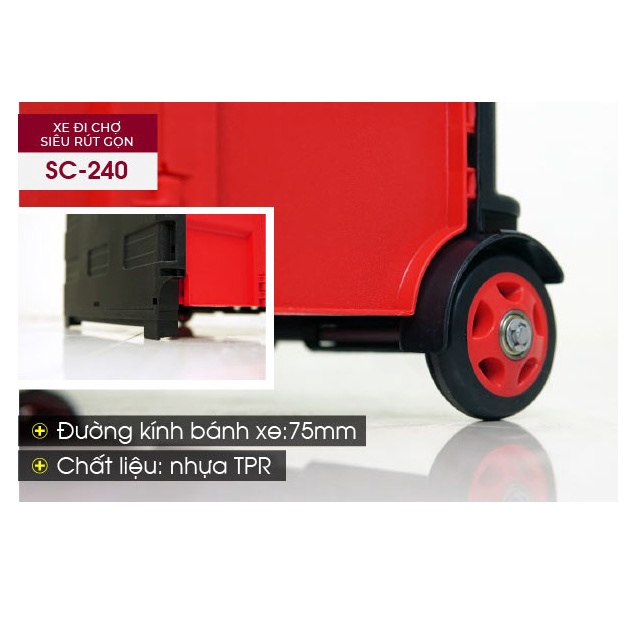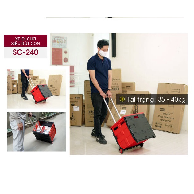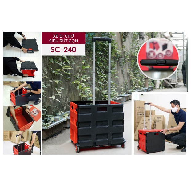 Nhà cửa & Đời sống > Dụng cụ & Thiết bị tiện ích > Xe đẩy || [Mã BMBAU50 giảm 50K đơn 150K] Xe kéo hàng đi chợ rút gọn Fujihome SC-240 - Tải trọng 40Kg - Bảo hành chính hãng 12TCòn hàng