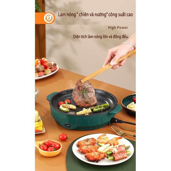 1-Chảo điện nướng phiên bản cải tiến: size 28 cm sâu lòng, ngắt điện an toàn, dùng chiên xào trực tiếp-lớp chống dính phiên bản cải tiến- Công suất của bếp điện : 300-600w