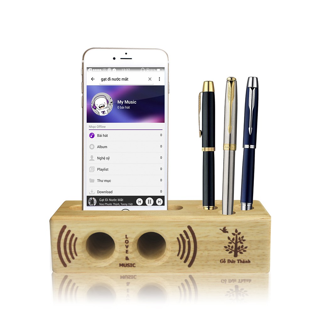 Kích thước: 4 x 5 x 15 cmĐược làm từ gỗ cao su có màu sắc tự nhiên, nhẵn bóng, chiếc đế đựng Iphone này sẽ mang lại công dụng tuyệt vời cho những ai sử dụng nó. Ngoài việc đựng Iphone thì đế còn dùng để cắm viết, đặc biệt đế còn thiết kế có 2 loa nhỏ, đặt Iphone vào thì âm thanh sẽ phát ra to và rõ hơn khi nghe nhạc.