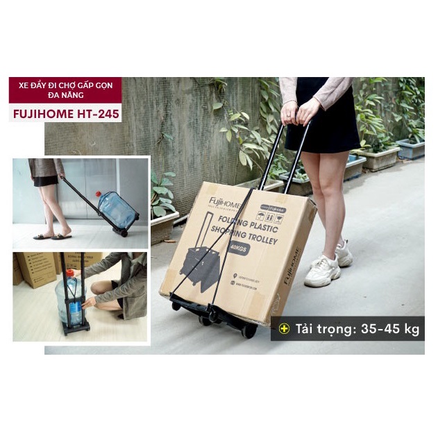 Nhà cửa & Đời sống > Dụng cụ & Thiết bị tiện ích > Xe đẩy || [Mã BMBAU50 giảm 50K đơn 150K] Xe đẩy đi chợ gấp gọn đa năng FujiHome HT-245 - Tải trọng 45Kg - Bảo hành chính hãng 12TCòn hàng