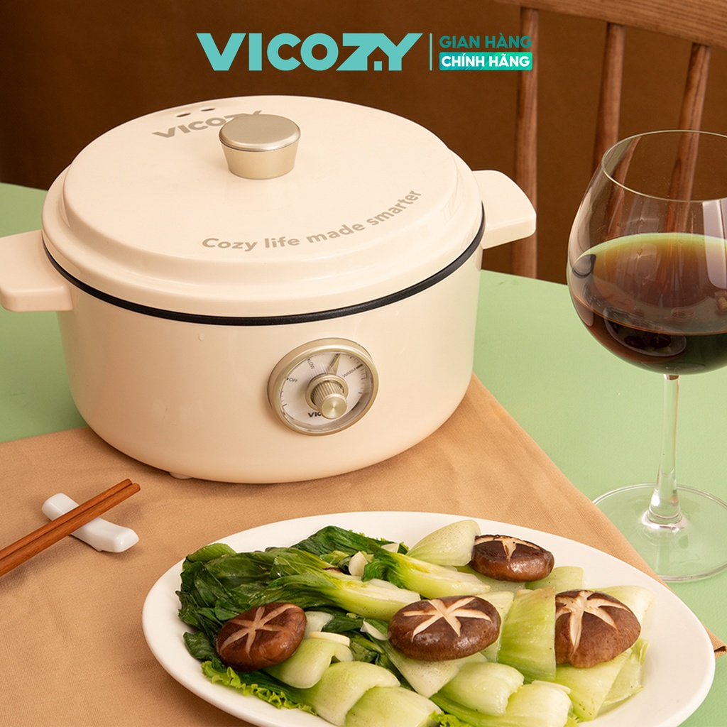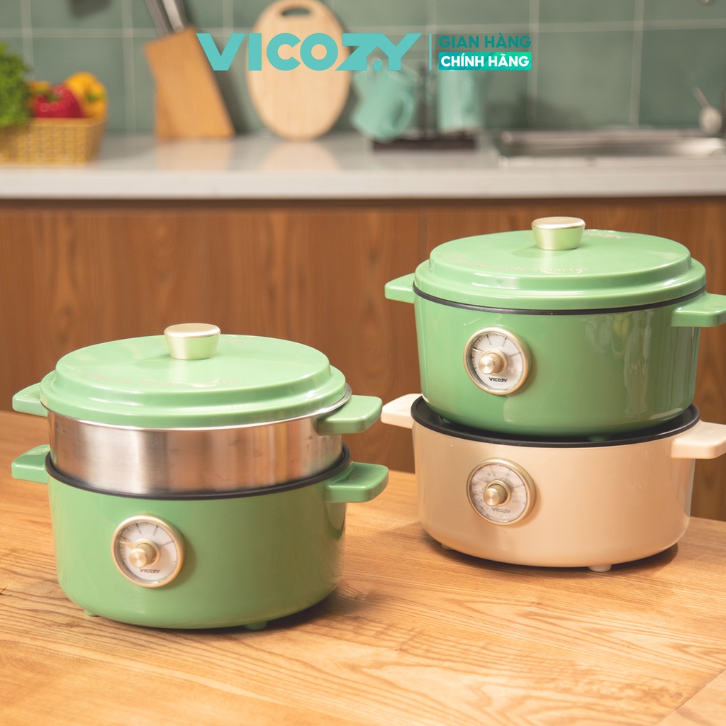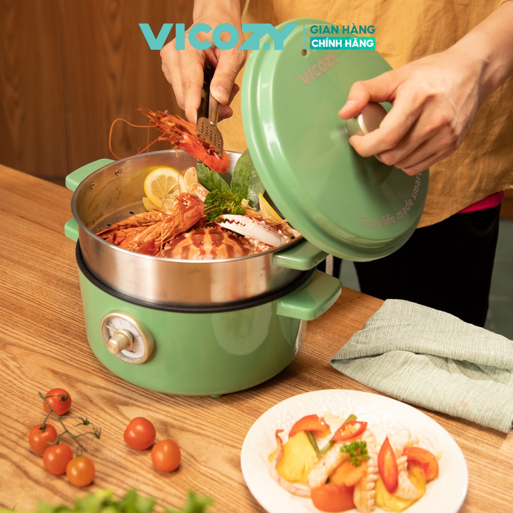 [Mã ELHADEV giảm 4% đơn 300K] Nồi điện đa năng, siêu chống dính 2 tầng VICOZY công suất 1000W cách nhiệt