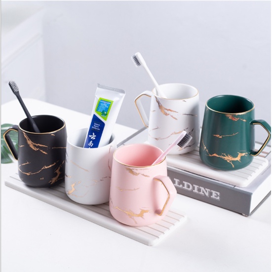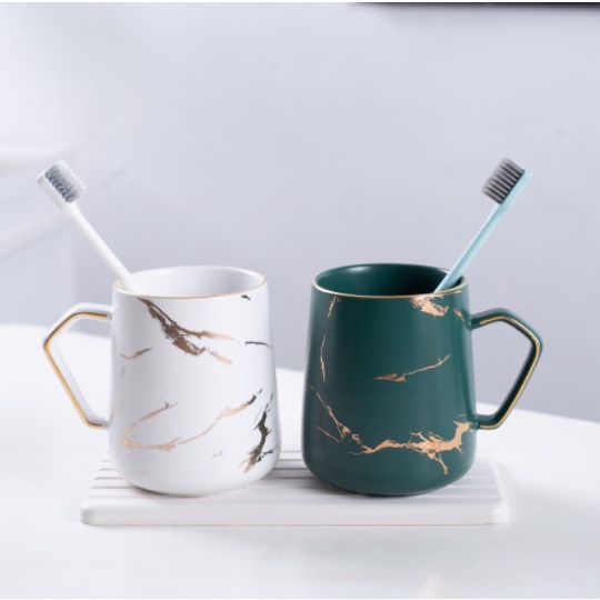 - Vân đá cẩm thạch cực kỳ nổi bật trên nền men sứ bóng của cốc.