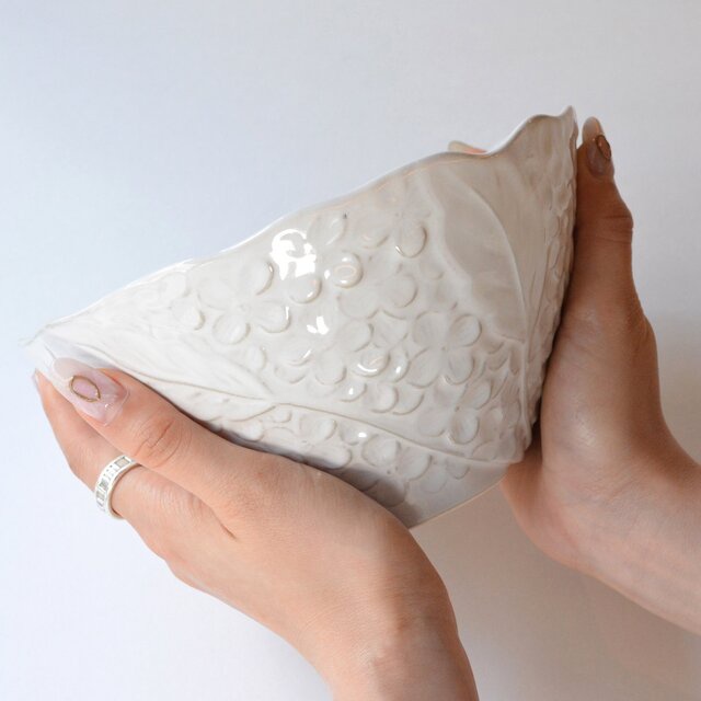 Giới thiệu Bát sứ họa tiết Fleur màu trắng Kiyohara Nhật Bản, Kích thước D12-14-17cm