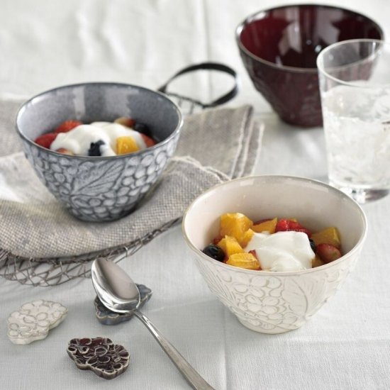 Bát sứ họa tiết Fleur màu trắng Kiyohara Nhật Bản, Kích thước D12-14-17cm