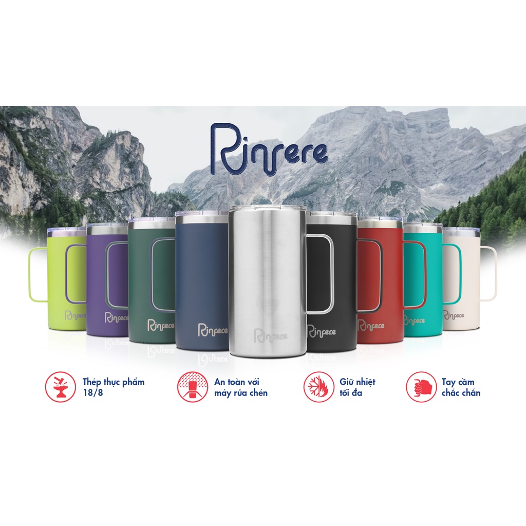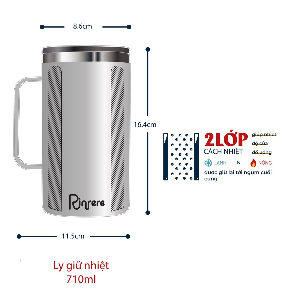 Ly Giữ Nhiệt Có Tay Cầm Nắp Trượt Chống Tràn Rinfere(710ml)