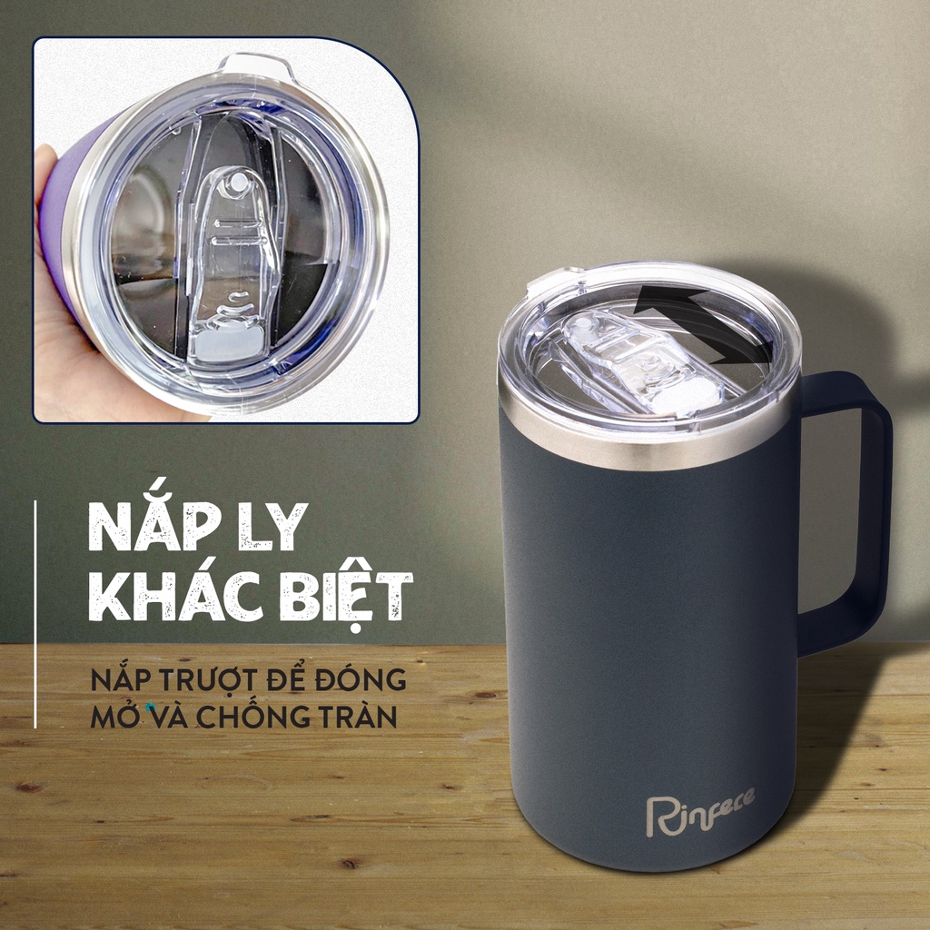 Giới thiệu Ly Giữ Nhiệt Có Tay Cầm Nắp Trượt Chống Tràn Rinfere(710ml)