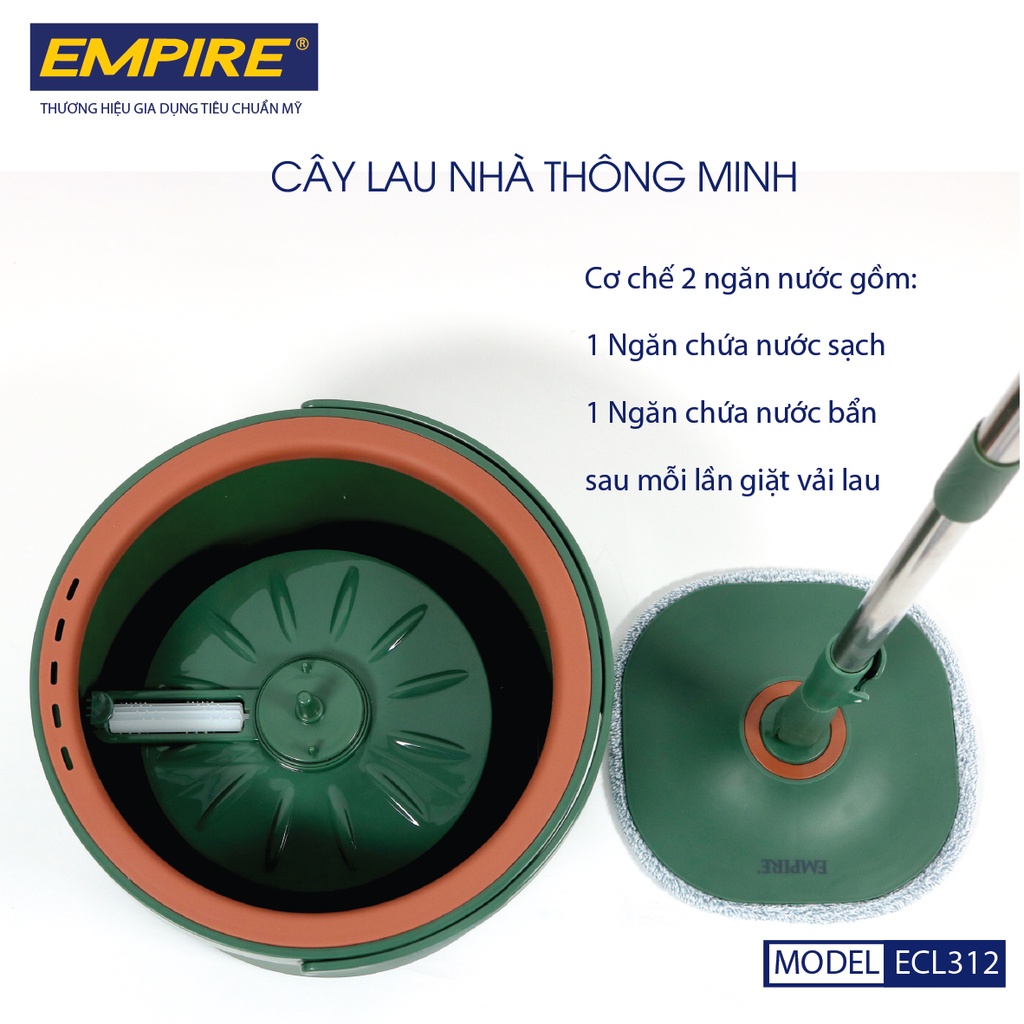 (Đây là mẫu cao cấp.)Cây Lau Nhà Empire ECL312 Bộ Lau Nhà Tự Vắt Thông Minh với khả năng lau sạch sàn nhà một cách nhanh chóng và nhẹ nhàng, phù hợp với mọi loại bề mặt sàn như sàn gạch, sàn gỗ, sàn đá, tường ốp gạch và mặt kính, phù hợp với mọi không gian và diện tích nhà ở của bạn.