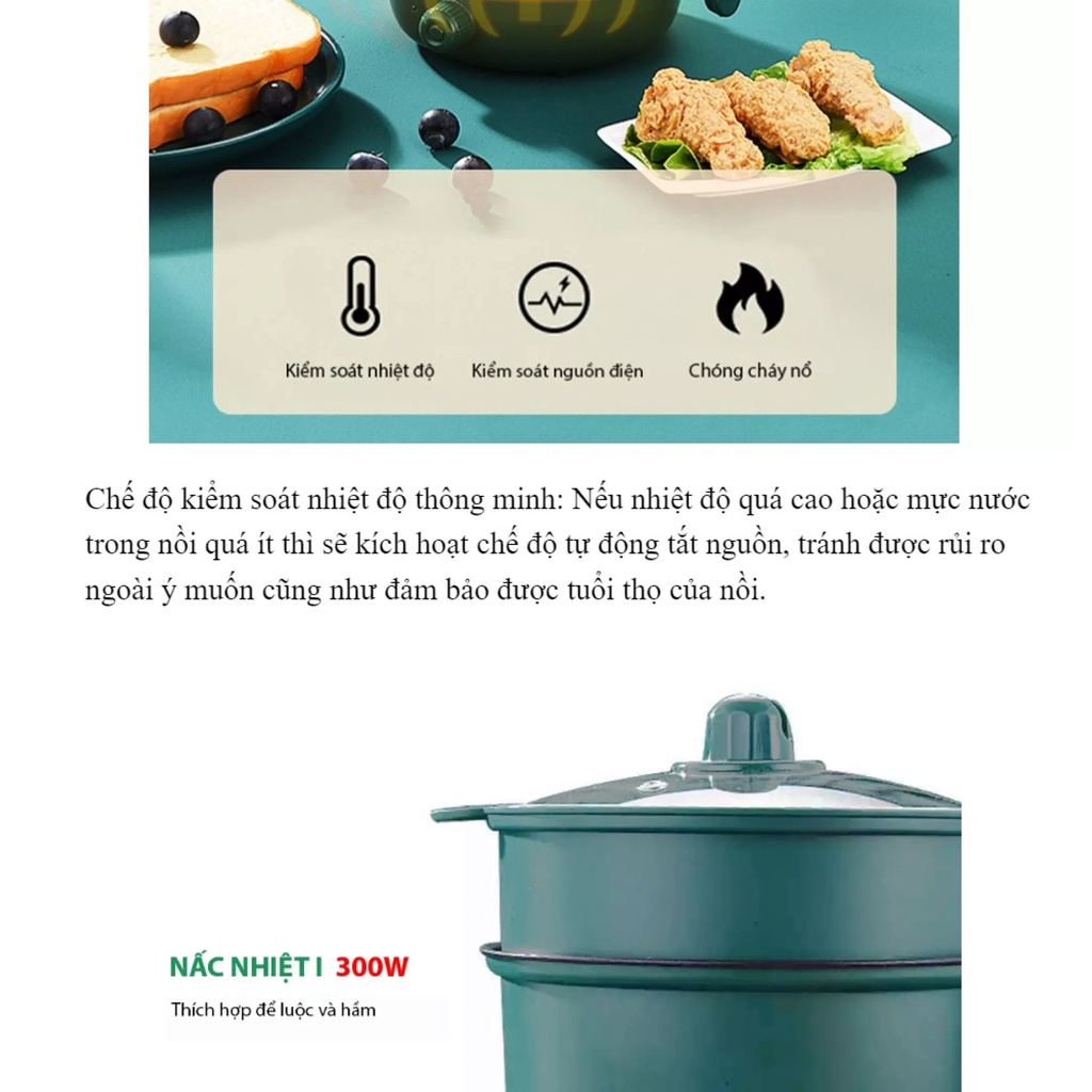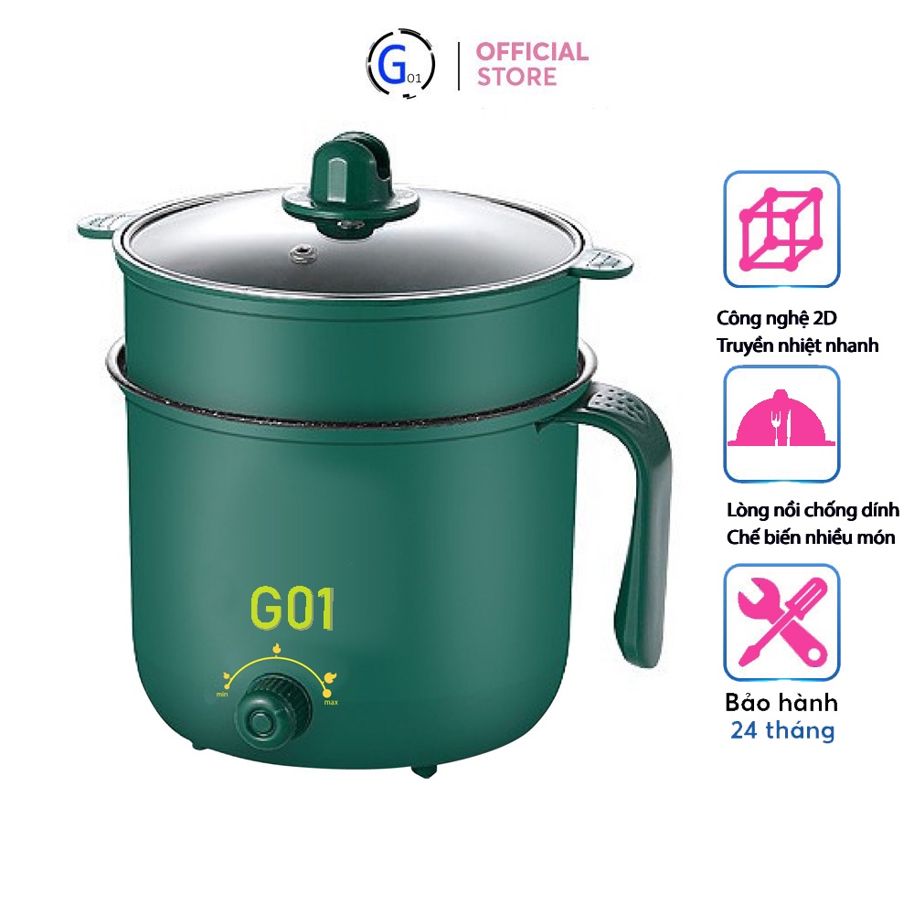 Nồi lẩu điện đa năng 1,8L kèm Giá Hấp, 2 Nấc Cách Nhiệt, không dính đáy G01
