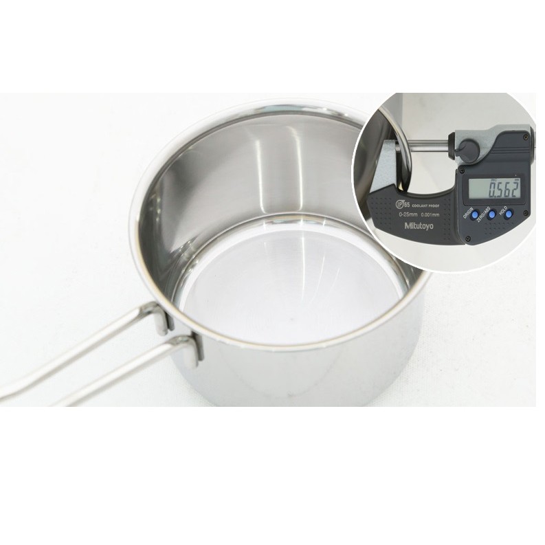 Nồi được làm bằng inox 430, ít bị oxy hoá, giúp làm nóng nhanh, thích hợp nấu cháo, nấu canh lượng ít. Nồi có tay cầm quánh chắc chắn, dài, tuy nhiên không bọc nhựa cách nhiệt, có thể hơi nóng, do đó cần dùng khăn hoặc găng tay để di chuyển nồi.