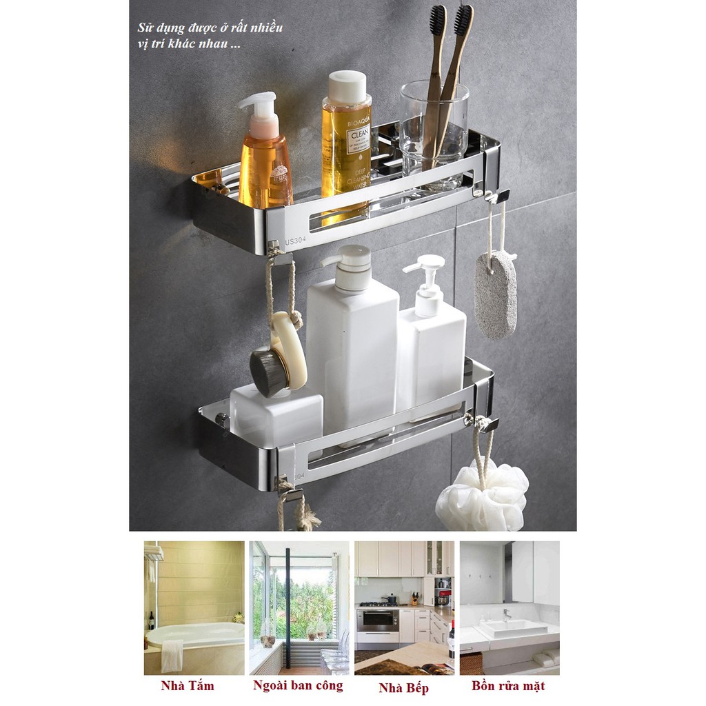 - Kệ nhà tắm Chữ nhật được làm 100% từ chất liệu inox SUS 304 cao cấp, mang đến cho sản phẩm một chất lượng tốt nhất.