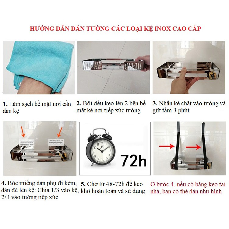 KỆ NHÀ TẮM CHỮ NHẬT 1 TẦNG INOX 304 LATIMAX KPT04 DÁN DÁN TƯỜNGƯU ĐIỂM VƯỢT TRỘI CỦA SẢN PHẨM: