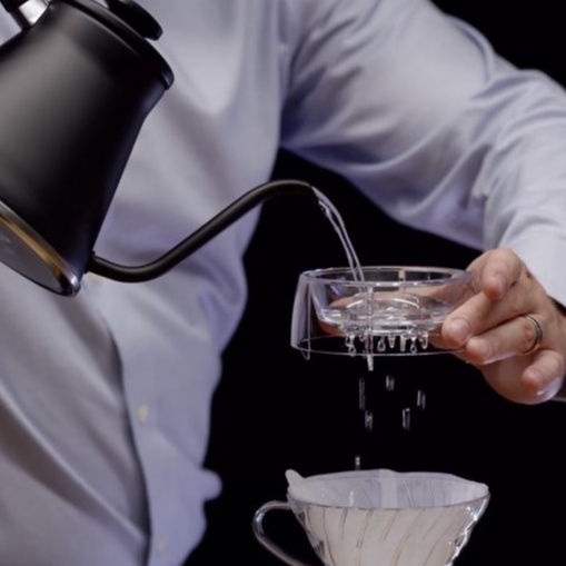Dụng cụ giúp rót nước chảy đều, tiết chế lượng nước, chảy ổn định. Nước thẩm thấu, thấm sâu vào lớp bột cà phê, giúp cà phê nở và tỏa hương thơm tối đa.
