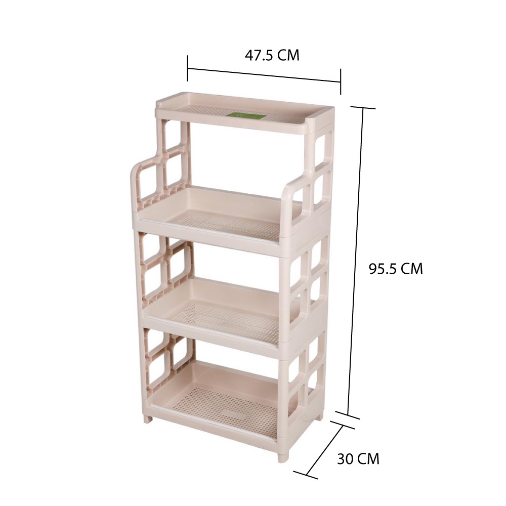 Kệ STACKO có kích thước 47,5X30X95,5 cm được làm bằng nhựa chất lượng, có độ bền cao. Kệ có khả năng thông gió tốt với các tầng lưới. 4 tầng của nó cung cấp nhiều không gian lưu trữ để lưu trữ và phân loại đồ đạc. Sản phẩm đi kèm với thiết kế đẹp mắt, phù hợp với nhiều góc khác nhau của ngôi nhà như văn phòng, phòng khách hoặc nhà bếp.- Có 4 tầng màu be