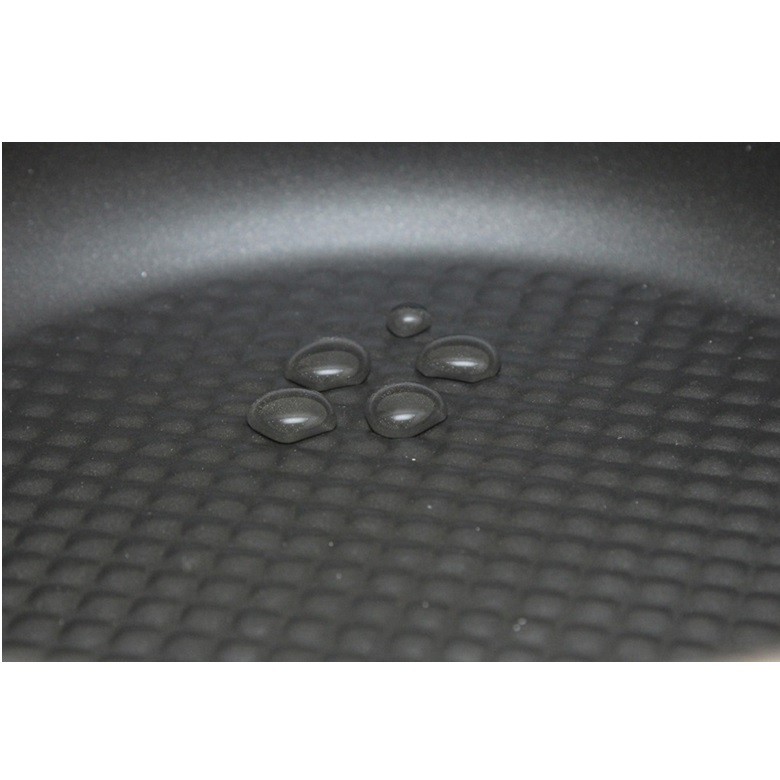 Bề mặt chảo phủ lớp chống dính an toàn, bền bỉ. Thiết kế nhám giúp chảo chiên tiết kiệm dầu tối ưu, có thể chiên thịt không dầu ngon như món nướng.
