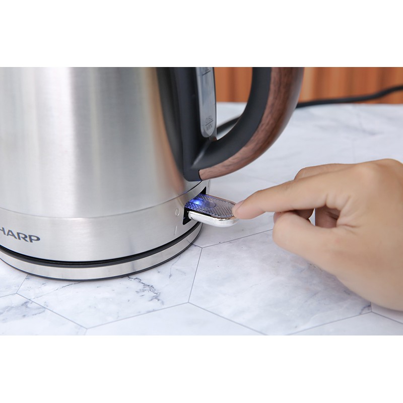 Bình đun siêu tốc Sharp thiết kế đơn giản mà bắt mắt, sang trọng, hài hòa trong không gian hiện đại